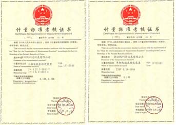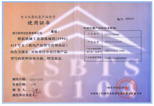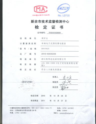 新余技術監督局鑒定證書 產品型號使用證書(825)