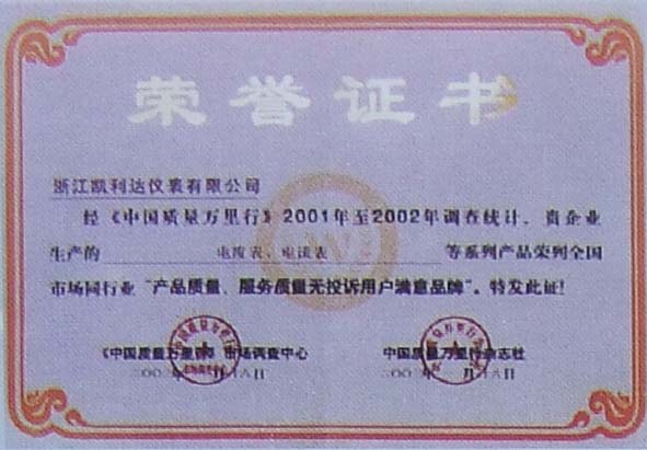 01年至02年中國質量萬里行評委無投訴誠信企業